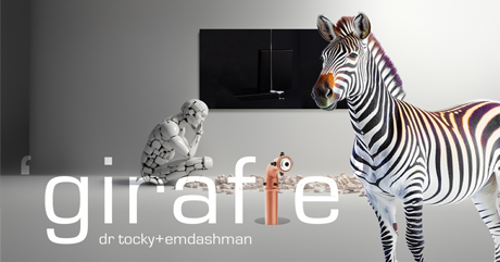 I’d been fiddling with the initial visual with no thoughts of ‘what, where or why’. Around the same time I was trawling through some’ emdashman’ audio sketches where I stumbled across a little 10 sec acoustic 'nugget'. The nugget and the video kept bouncing off each other and in the end they had a giraffe!
